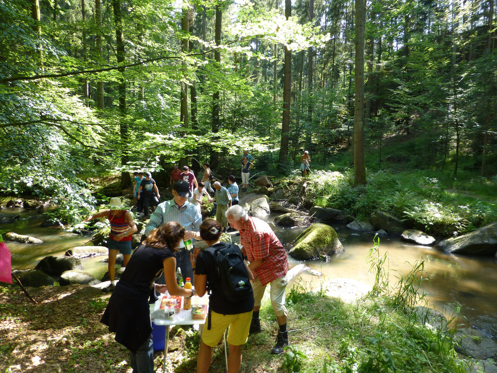 Zum Saisonabschluss wanderten Mitglieder der Tanzsportabteilung im Otterbachtal. Vom Gasthaus Bruckhaus ging es zunächst steil bergauf zur Aschenbrenner Marter. Jetzt führte der Weg um das Anwesen der fürstlichen Familie herum. Nun ging es gemütlich weiter den Ottergraben hinab bis zum Wanderweg, der von Unterlichtenwald nach Altenthann führt. Nach einer abenteuerlichen Bachüberquerung führte der Weg bachaufwärts. Als es erneut über den Bach ging, wartete eine Überraschung auf die Wanderer. Es wurden an einer idyllischen Stelle von einem Geburtstagskind Sekt und Saft kredenzt. Als dann auch der letzte Teil der Wegstrecke geschafft war, kehrte man im Gasthaus Bruckhaus ein und ließ den schönen Nachmittag bei Kaffee und Kuchen oder einer Brotzeit ausklingen.