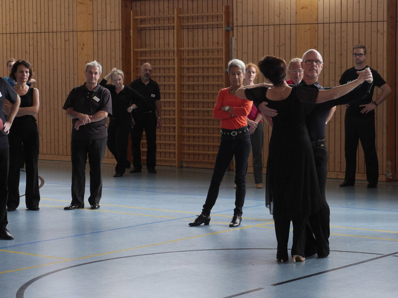 Nachmittags ging es mit Elan und Spritzigkeit über in die Sparte Latein. Hier wurden bei den Tänzen Jive und Rumba am Thema gearbeitet und dann mit einer ebenfalls neu erlernten Figurenfolge in der Samba der Nachmittag beendet.